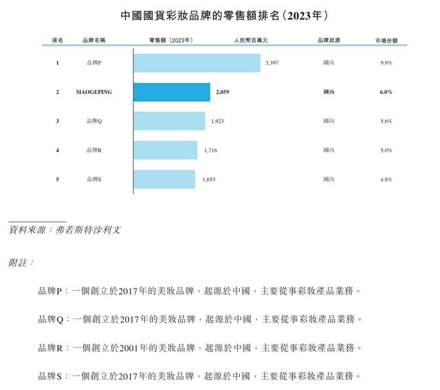 根据弗若斯特沙利文数据,2023年国内彩妆排名前五的品牌里,有三大品牌均成立于2017年。此外,按2023年零售额计算,前五大国货彩妆品牌占据31.3%的市场份额。