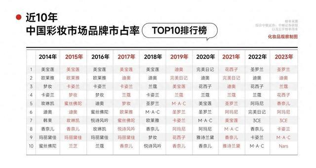 这份榜单背后,是彩妆品牌一次次的变迁,亦是行业的一部迭代史。