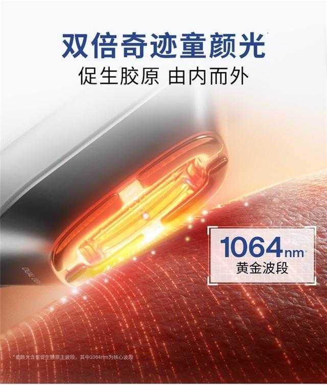 ✅ 光电二合一科技:双倍奇迹童颜光(真皮层促胶原) + 变频微电流(肌肉筋膜层提拉),层层作用,抗老更彻底;