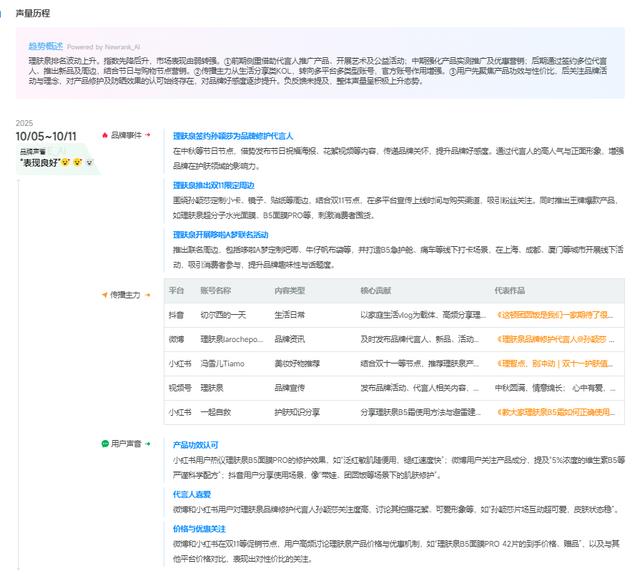 产品功效认可 小红书用户热议理肤泉B5面膜PRO的修护效果,如“泛红敏肌随便用,褪红速度快”;微博用户关注产品成分,提及“5%浓度的维生素B5等严谨科学配方”;抖音用户分享使用场景,像“带娃、团圆饭等场景下的肌肤修护”。代言人喜爱 微博和小红书用户对理肤泉品牌修护代言人孙颖莎关注度高,讨论其拍摄花絮、可爱形象等,如“孙颖莎片场互动超可爱,皮肤状态稳”。价格与优惠关注 微博和小红书在双11等促销节点,用户高频讨论理肤泉产品价格与优惠机制,如“理肤泉B5面膜PRO 42片的到手价格、赠品”,以及与其他平台价格对比,表现出对性价比的关注。