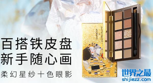 卡姿兰是中国时尚彩妆领导品牌,诞生于2001年,专注研发和创新,打造中国的国际化彩妆,产品包括眼影盘、睫毛膏、粉底液、粉饼、口红、唇釉等。卡姿兰柔幻星纱十色眼影盘“吻金艺术家”#03暮色柔金主打大地色的渐变色调,饱和度高,妆效柔和自然,单眼皮都适用;“淘金收藏家”#04星跃流光以多重质感多重色调的红棕色与蓝色搭配,叠涂单用都闪耀着水晶光感,色调浓郁,极具个性;“探金鉴赏家”#克林姆特限量版将冷艳蓝金色与红棕色结合,可用于打造璨金的开运锦鲤妆。