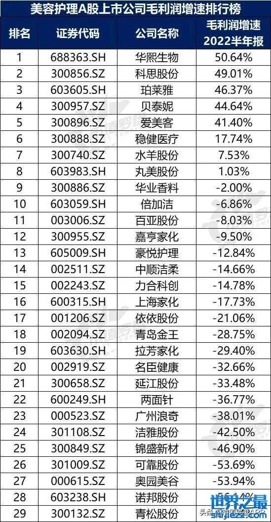 图7:美容护理行业A股上市公司毛利润增速排行榜
