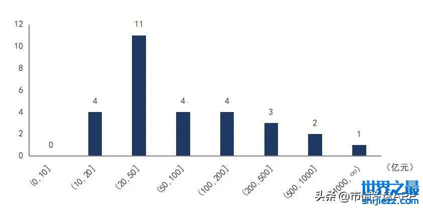 图1:2022年8月31日美容护理行业A股上市公司市值分布(单位:家)