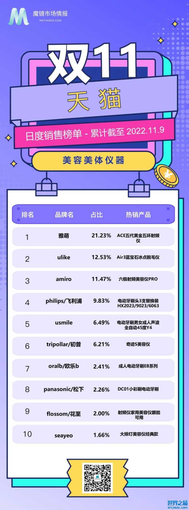 双11榜单来啦(美妆、个护行业截至11.9累计排行)