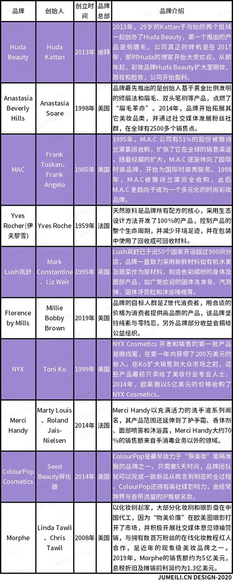 继Huda Beauty之后,人气社交媒体品牌Anastasia Beverly Hills名列第二,MAC名列第三,Yves Rocher和Lush分列第四和第五。