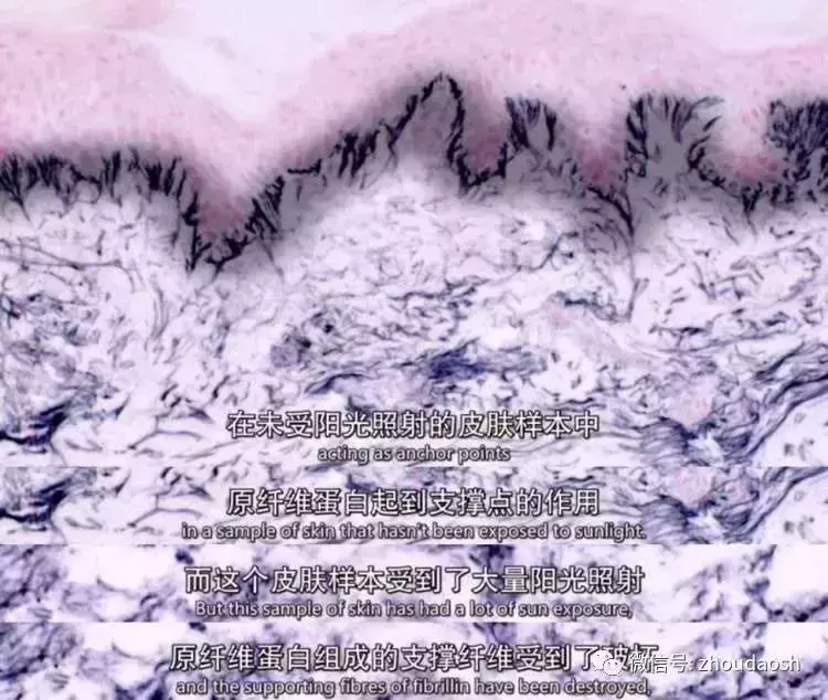 克里斯的同事瑞秋·沃森教授给出了解释:皮肤中的真皮组织为皮肤提供了强度和弹性,表皮与真皮间有一种原纤维蛋白,它们起到了一种像帐篷桩一样的作用,能够支撑起表皮并且使其保持伸展。