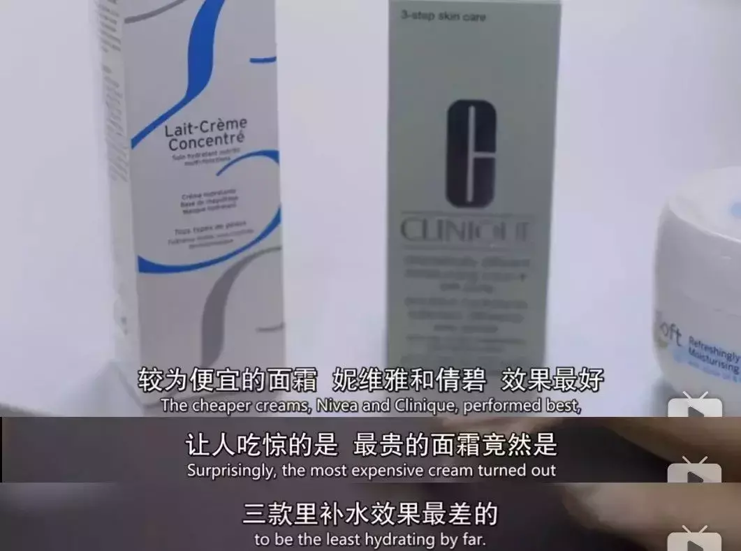 三周后,实验结果让测试者们非常意外,只有两种产品能让肌肤含水量增加,分别是低价的和中等价位的。最贵的一款,补水效果最差。