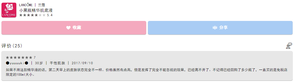 兰蔻家的护肤品虽然都被吐槽烂了,但是这款小黑瓶是真好用。还有菁纯系列也是我的心头好。