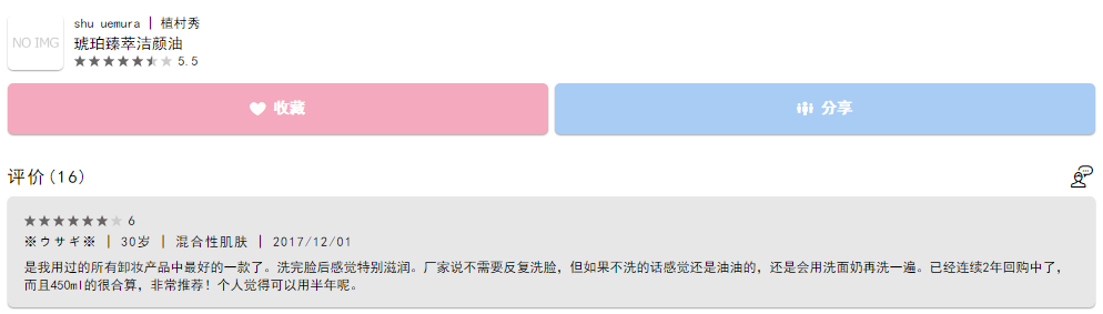 没有一般卸妆油闷脸的感觉,反而能真正感受到保湿力。卸的非常干净,唯一缺点是对我来说还是有一点点糊眼睛。
