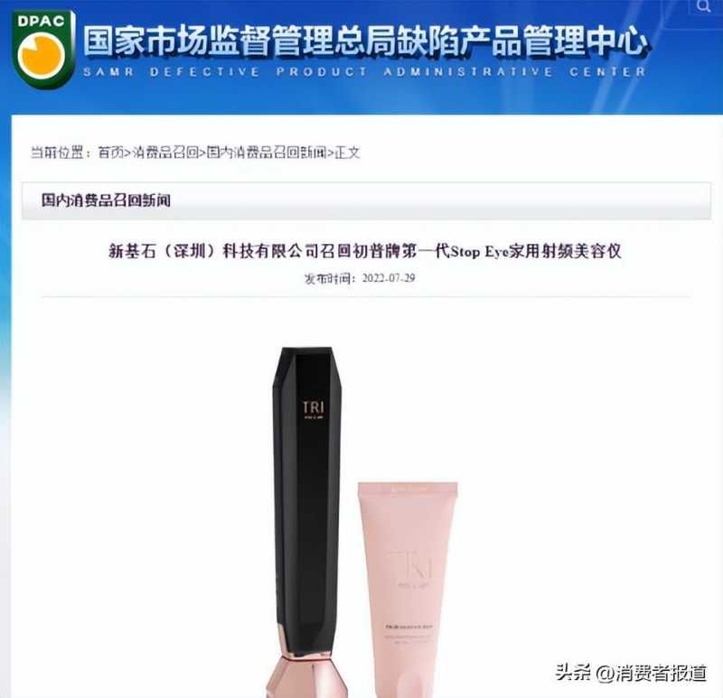 消道长关注到,据市场监管总局缺陷产品管理中心通知,召回了2020年3月至2021年9月期间进口的初普牌第一代Stop Eye型号家用射频美容仪,数量为182215台。资深业内人士表示:“如果产品温控不到位,则容易带来风险。”