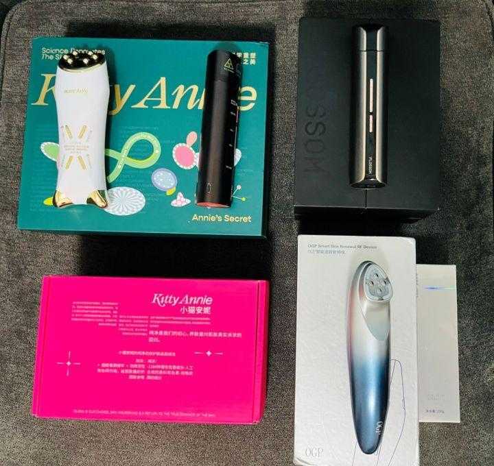 评测的美容仪型号:花至射频美容仪、AMIRO觅光六极射频美容仪、OGP时光肌智能射频仪、小猫安妮小鱼能量棒美容仪