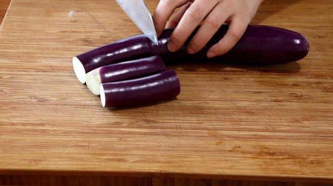 1、 茄子清洗干净切成细条,放入蒸锅中蒸上5分钟。