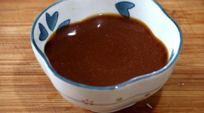 3、 准备一个酱汁,碗中倒入少许盐、3勺生抽、一勺白糖、一勺醋、一勺淀粉,再往里面加入3勺清水,用筷子充分搅散。