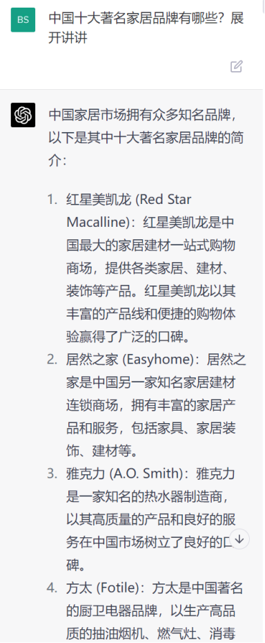 ChatGPT:人工智能评选中国十大著名家居品牌,你家有吗?