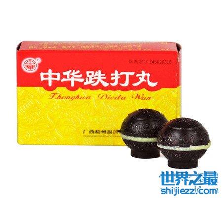 中华跌打丸,主要成分有鹅不食草、制川乌、毛两面针、鸡血藤等三十二味中药,能够止血生肌、消除肿胀和疼痛,疏通筋骨脉络,对于伤着筋骨、新旧淤患、创伤出血、风湿淤痛的病人有很大的帮助。