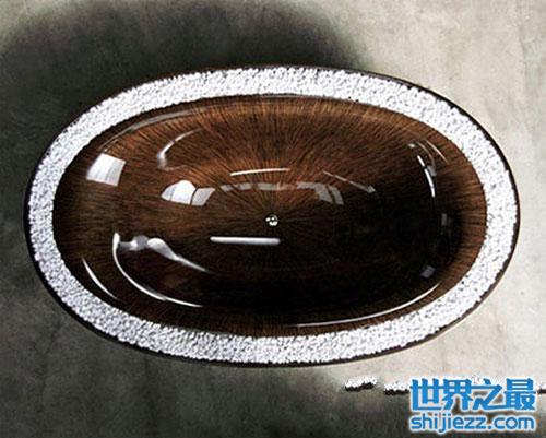 这是一款木质的浴缸,是不是有种穿越到古代的感觉,但是他最大的特点就是浴缸的外周被镶嵌满了珍珠钻石般的装饰品,椭圆形的浴缸,被闪亮的钻石包围,沐浴在其中,感觉整个人都在发光,木质的材料更是回归了自然,回归了古时,身体的触碰给人一种悠然自在的感觉,感受沐浴时身体的无限放松。