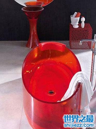 这款浴缸更是奇特,他的材料选择打破了以往的陶瓷,而是选用了玻璃制作,使浴缸摆脱了传统的白色,有了很多种不同的颜色,色彩众多,以往的白色过于单调,彩色的浴缸更能让人感受多姿多彩的沐浴乐趣,