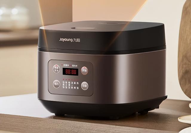 九阳F-30FZ619电饭煲采用底盘加热,热量传递均匀稳定,快慢烹饪皆能精准控制;金属框架经拉丝工艺,配玫瑰金与深栗棕配色,适配多种厨房风格,3L容量适合2-3人及小型聚会。