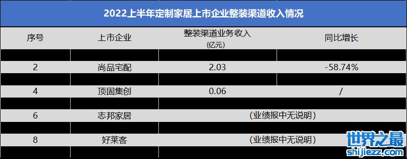 截止目前,除了我乐家居外,其余8家定企全部宣告入局整装赛道。不过,仅有一半定企在半年业绩报中公示了整装渠道收入状况。