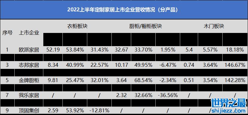 相比之下,厨柜/橱柜板块的业务收入均表现不佳。在7家涉猎厨柜/橱柜业务的定企中,仅两家实现营收增长,其余均下跌。其中,欧派家居的橱柜板块上半年营收仅同比增长1.95%,我乐家居同比下滑36.56%,皮阿诺同比下滑47.17%。