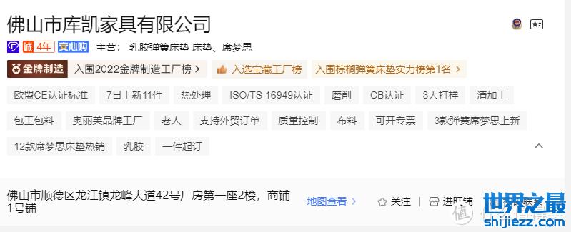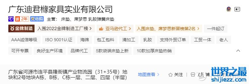 这家店铺在1688上认证的时间不长,是2年诚信店铺,有安心购服务,同时也获得了金牌制造标签,在床垫、席梦思新晋榜单中位列第2名。因为这家店铺主要是销往海外的,所以在亚马逊上很多同类商品其实就是他们代工生产的。