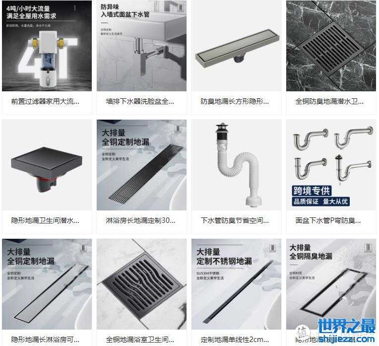 这家工厂的产品主要有地漏、台盆下水、浴缸下水、隔气下水及其他洁具五金配件,产品以中高档为主,国内国外都有销售,支持一件起订。