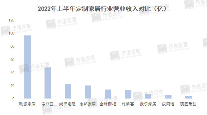 其中欧派位于行业绝对头部,上半年实现营收96.93亿,第二名索菲亚营收47.81亿,而尚品宅配营收仅为23.05亿。