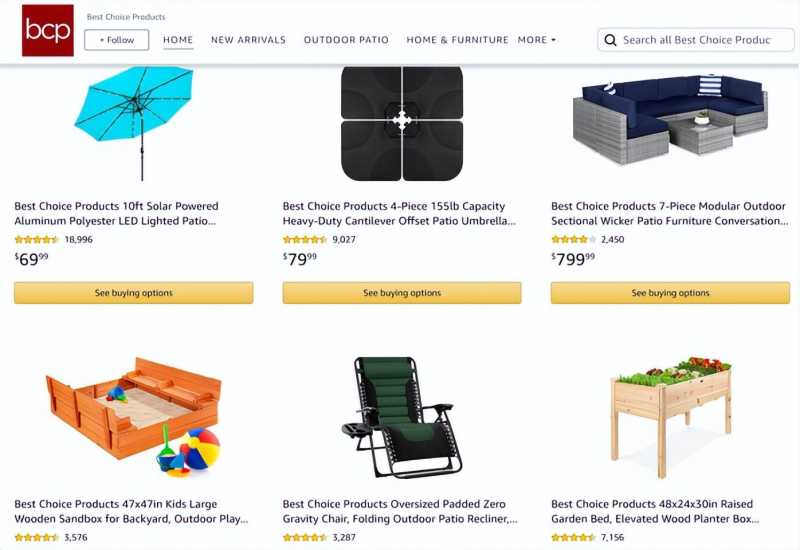 Best Choiceproducts与第一名的Spreetail 一样,主营家居、家具类产品,涉及户外和室内家具。