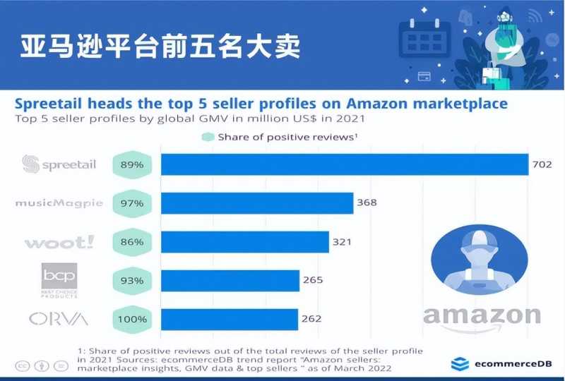 近日,ecommerceDB发布了最新的《亚马逊卖家:市场洞察、GMV数据研究报告》,对头部卖家进行盘点和排列。