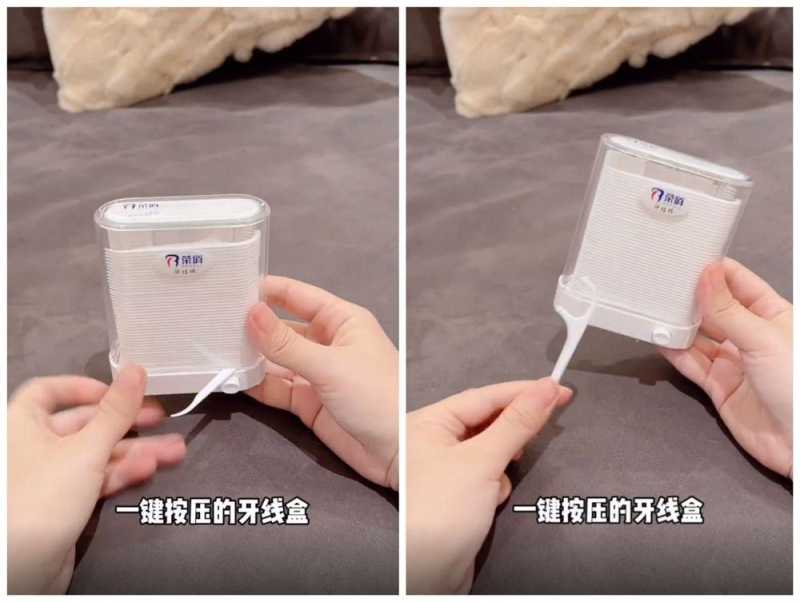 但有了这种牙线盒,上面这些问题就都迎刃而解了,它采用按压式的设计,按一下就能弹出一支牙线来,方便实用又卫生,很值得推荐~