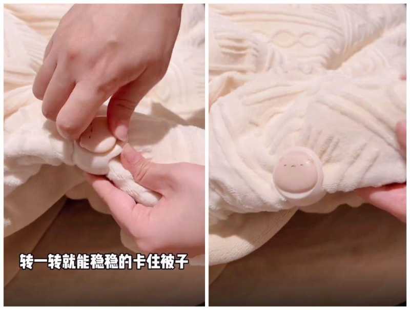 这时候也别急,这种被单固定器可以帮你,它是无针的设计,用旋钮起到固定作用,实话讲用起来比有针的那种放心很多。