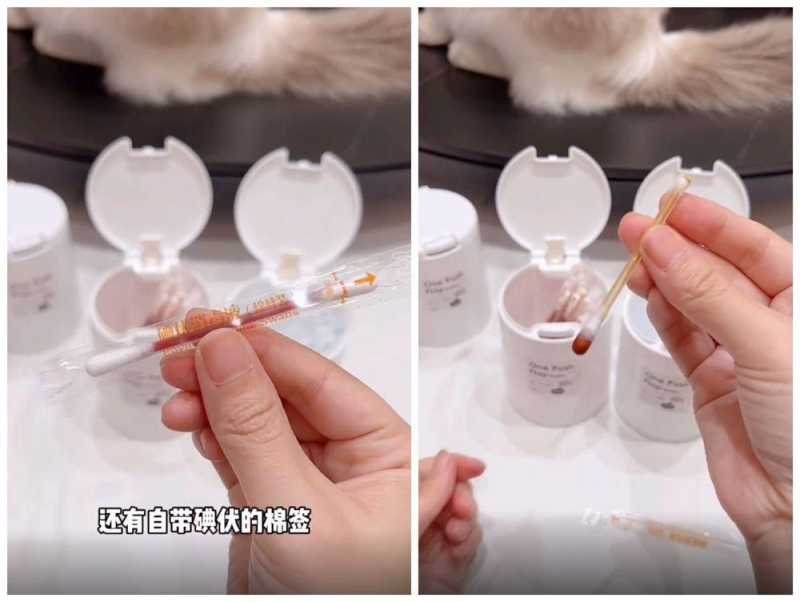 这小小的棉签也是我见过很贴心的设计,它有一个中空的管子,里面附有碘伏,掰断上面的棉签后,碘伏自动流入下方棉签上,涂抹擦拭方便得很~