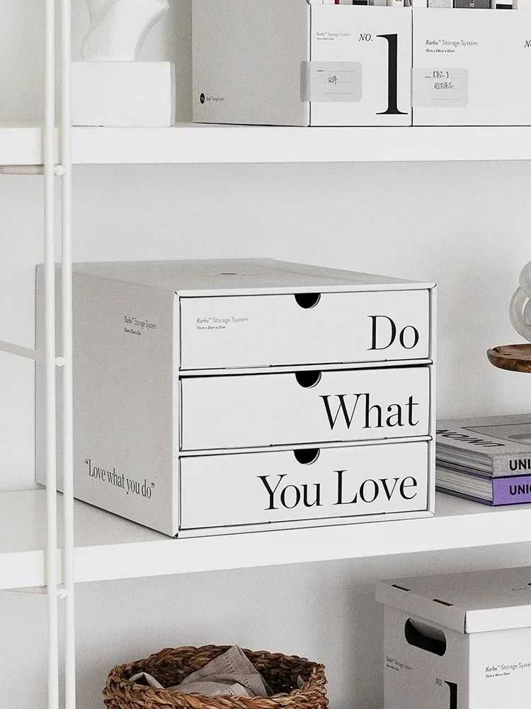 这家店铺最出名的就是黑白配色的收纳盒,盒子上有阿拉伯数字1、2、3或者黑色的英文。大部分收纳产品的材质都是瓦楞纸,最主要的就是颜值足够高。