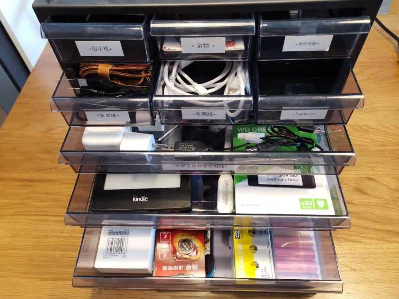 这个桌面式抽屉是真的好用,可以分类收纳各种零碎的东西,例如各种型号的充电线、电池、文具、耳机等等。