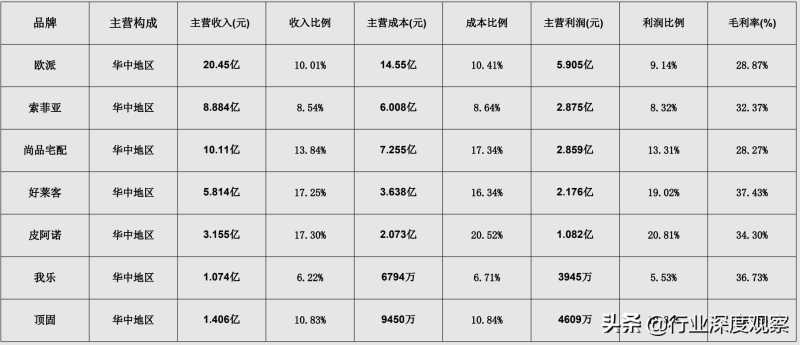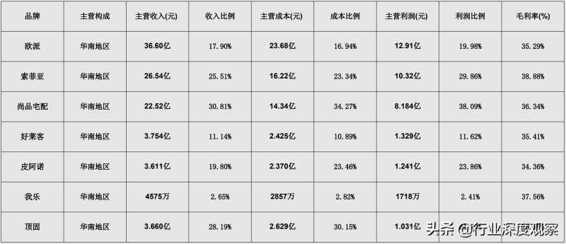 全屋定制上市品牌各地区销售情况