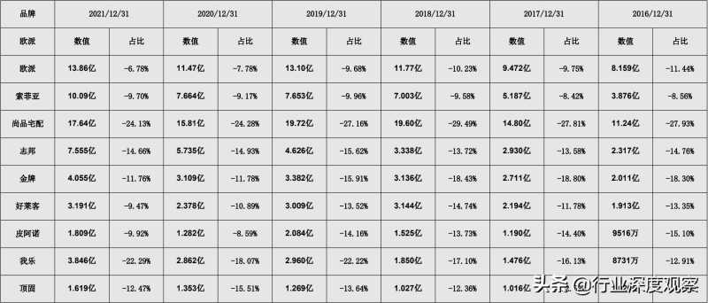 全屋定制上市品牌过往九年的业绩对比