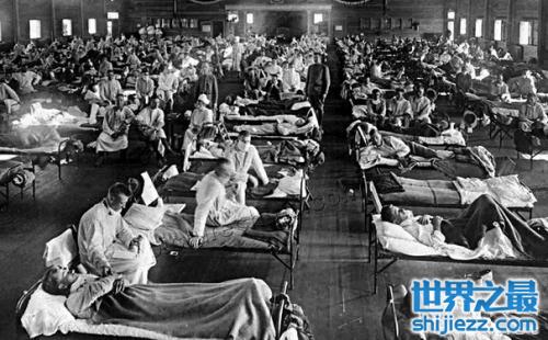 爆发于1918年的臭名昭着的西班牙流感。据科学家估计,它导致全球2000万-5000万人死亡,相比之下,第一次世界大战造成1000万的死亡人数只有它的1/2-1/5。