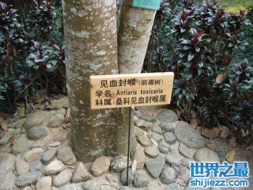 又名“毒箭木”、“剪刀树”,国家保护的濒危植物,是世界上最毒的植物种类之一。树汁呈乳白色,剧毒。一旦液汁经伤口进入血液,就有生命危险。古人常把它涂在箭头上,用以射杀野兽或敌人。秒杀。原产东南亚。我国海南,西双版纳植物园中可见。
