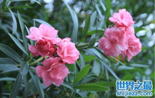 又名柳叶桃,有毒,含有强心毒甙,夹竹桃作用与洋地黄同,干燥的3克就能使人死亡。主要表现为洋地黄中毒症状。恶心、呕吐、腹痛、腹泻;心律紊乱、心跳缓慢、不规则,最后出现室颤、晕厥、抽搐、昏迷、或心动过速、异位心律,死于循环衰竭。