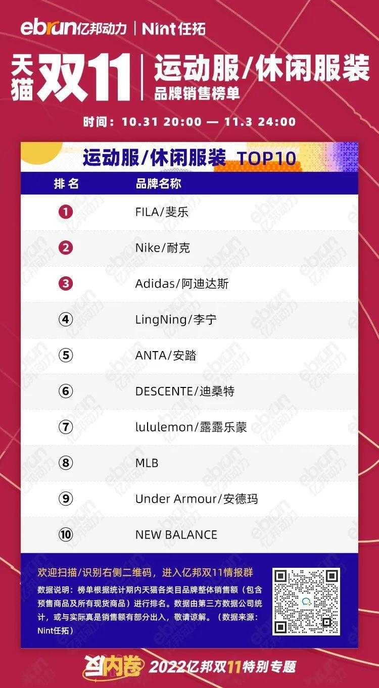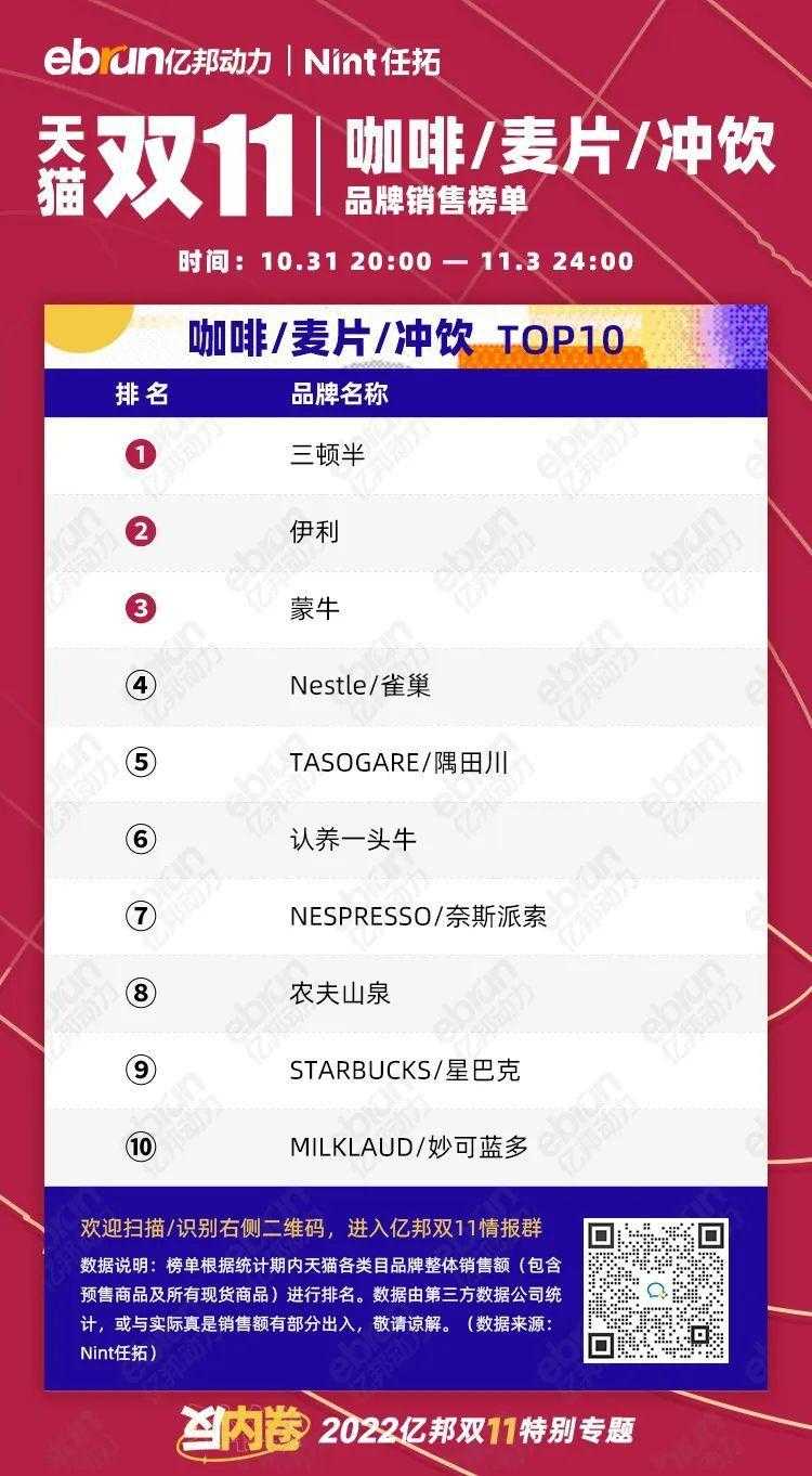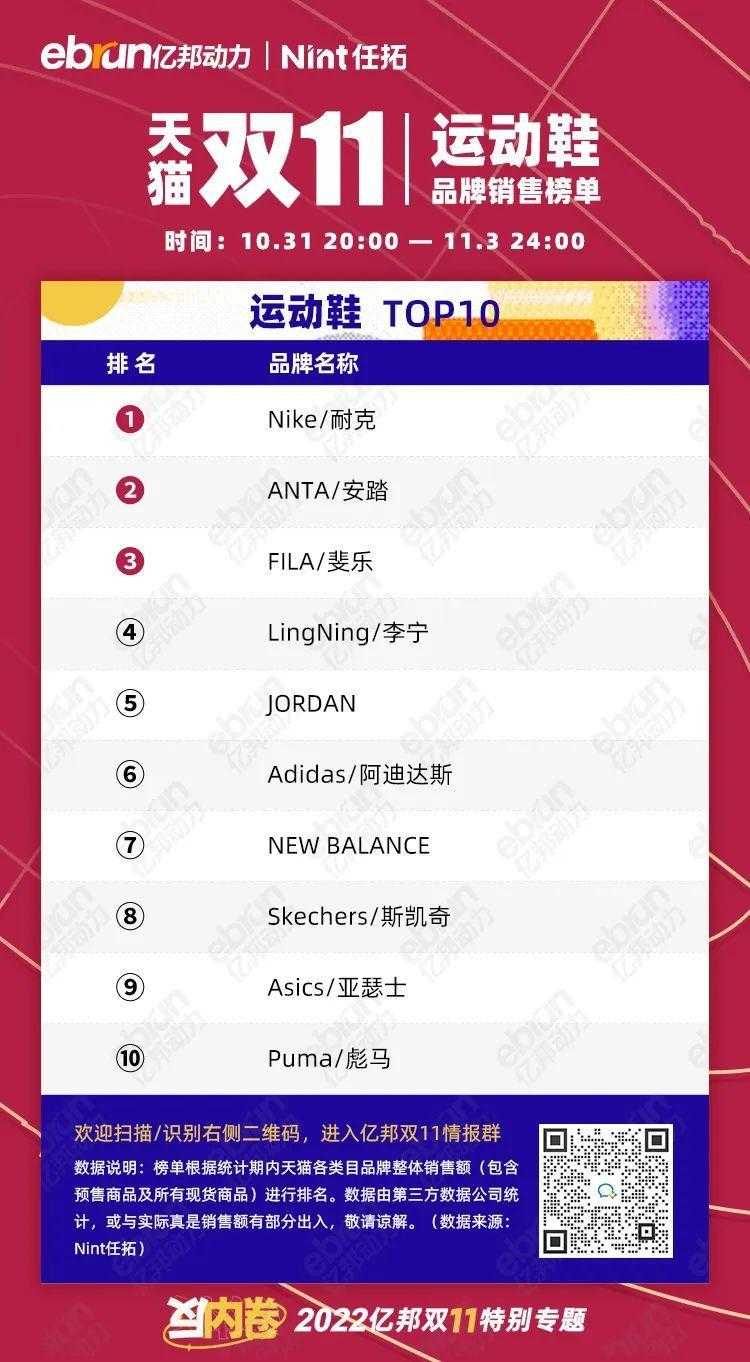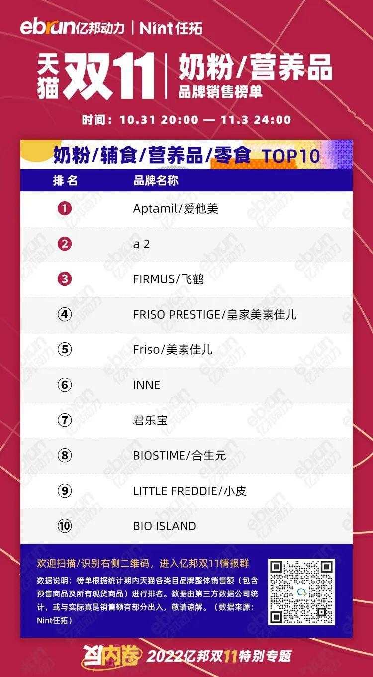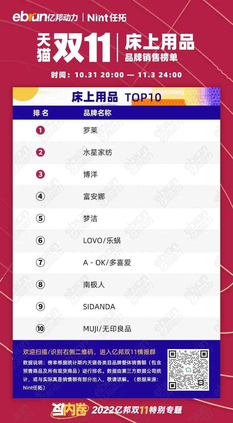 数据说明:榜单根据统计期内天猫各类目品牌整体销售额(包含预售商品及所有现货商品)进行排名。数据由第三方数据公司统计,或与实际真是销售额有部分出入,敬请谅解。(数据来源:Nint任拓)