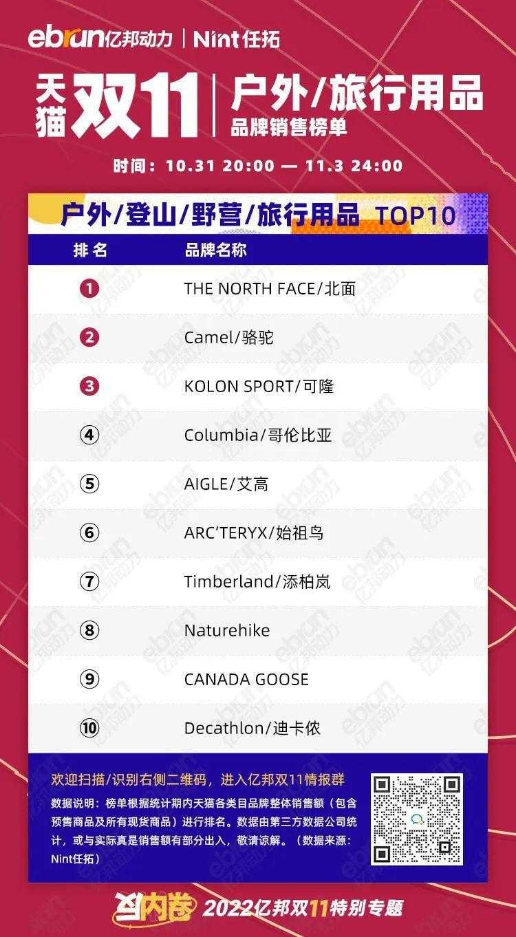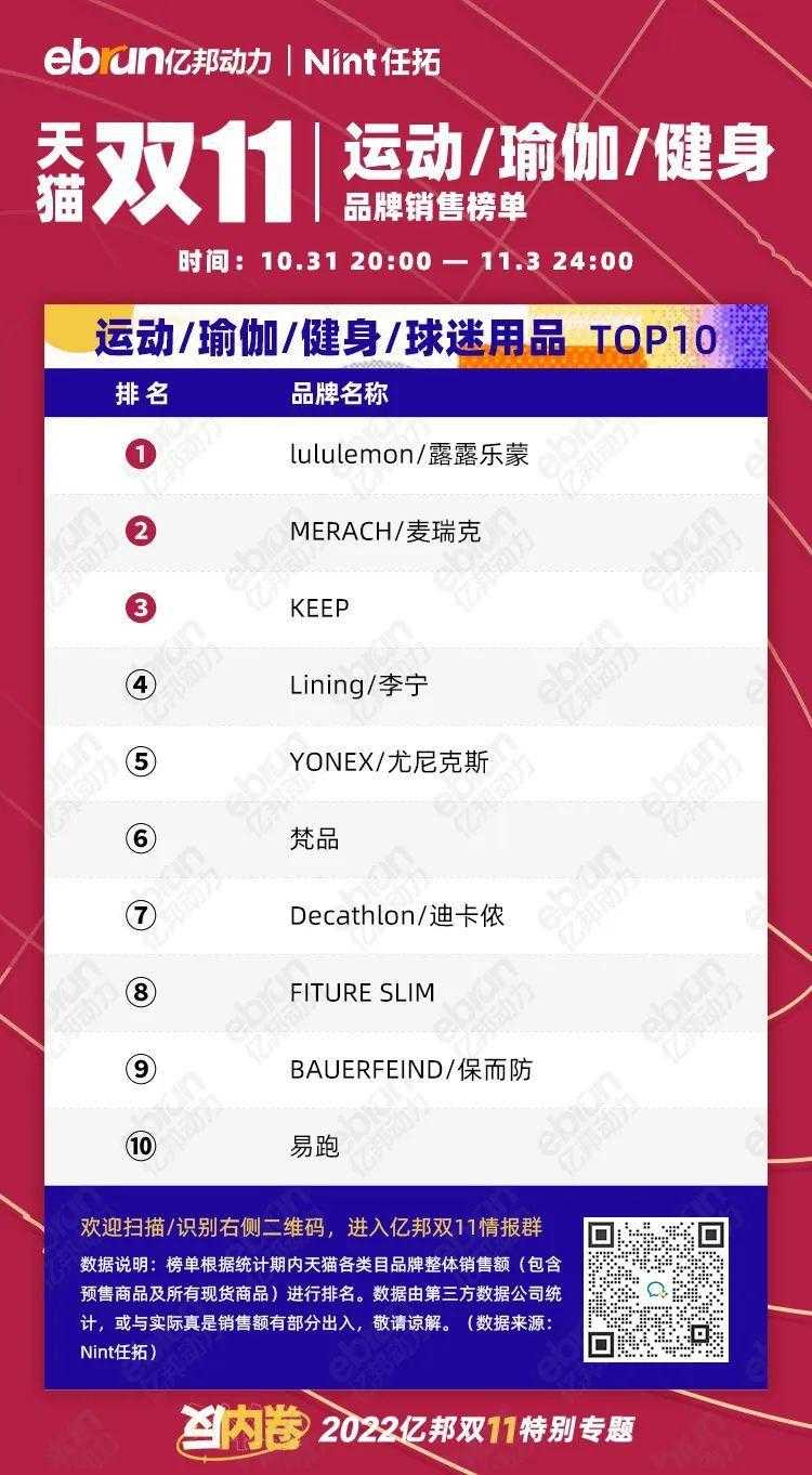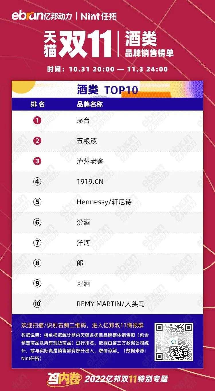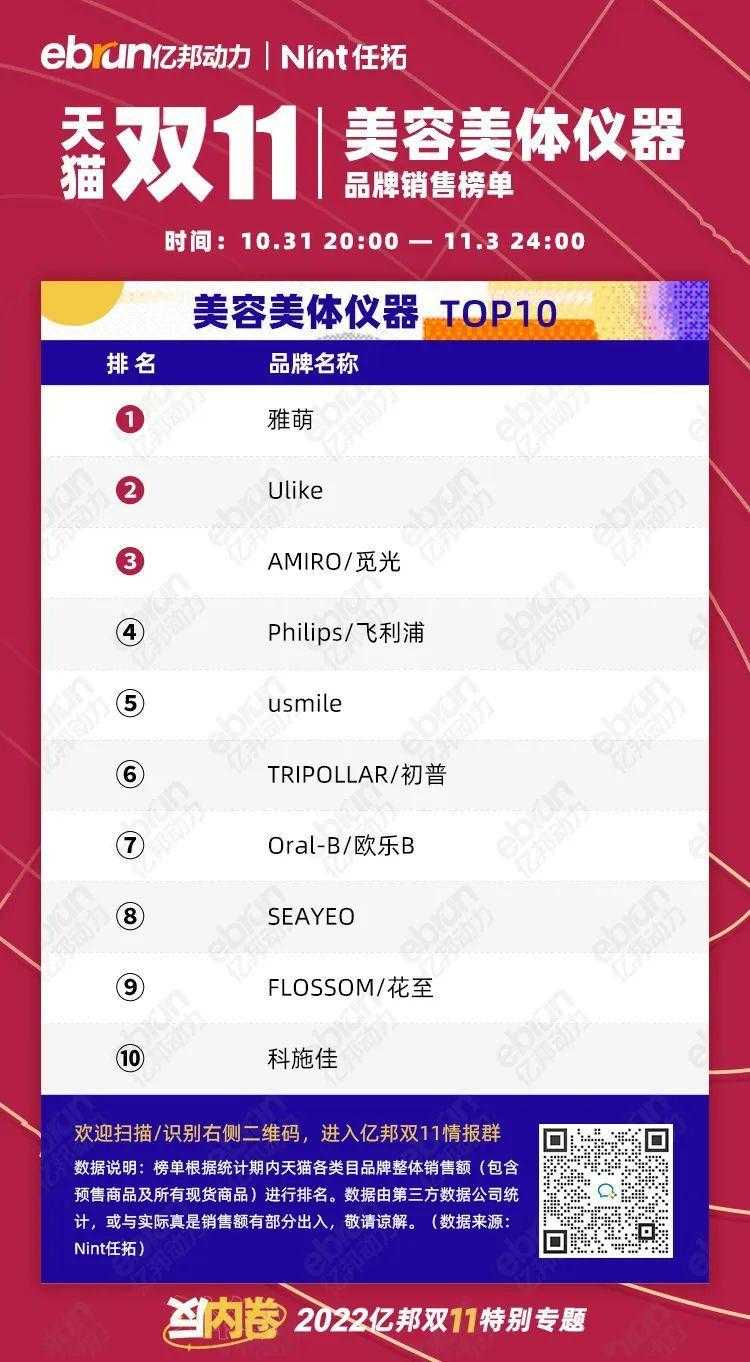 数据说明:榜单根据统计期内天猫各类目品牌整体销售额(包含预售商品及所有现货商品)进行排名。数据由第三方数据公司统计,或与实际真是销售额有部分出入,敬请谅解。(数据来源:Nint任拓)