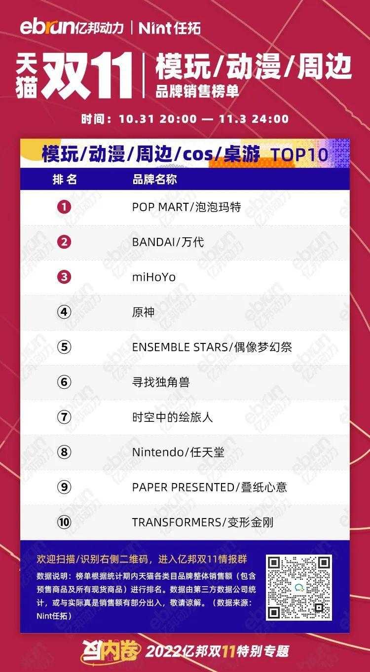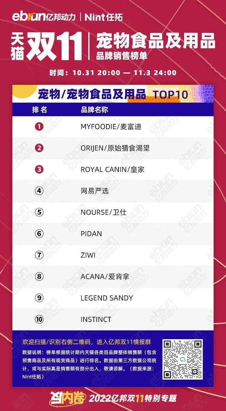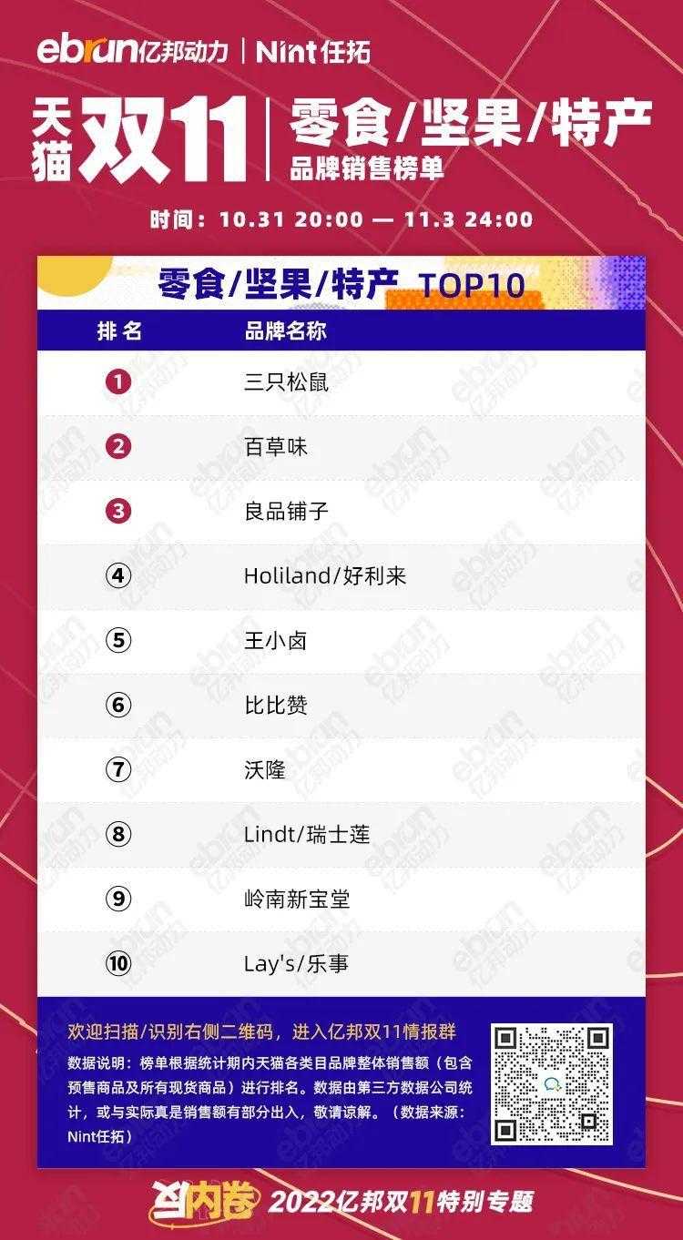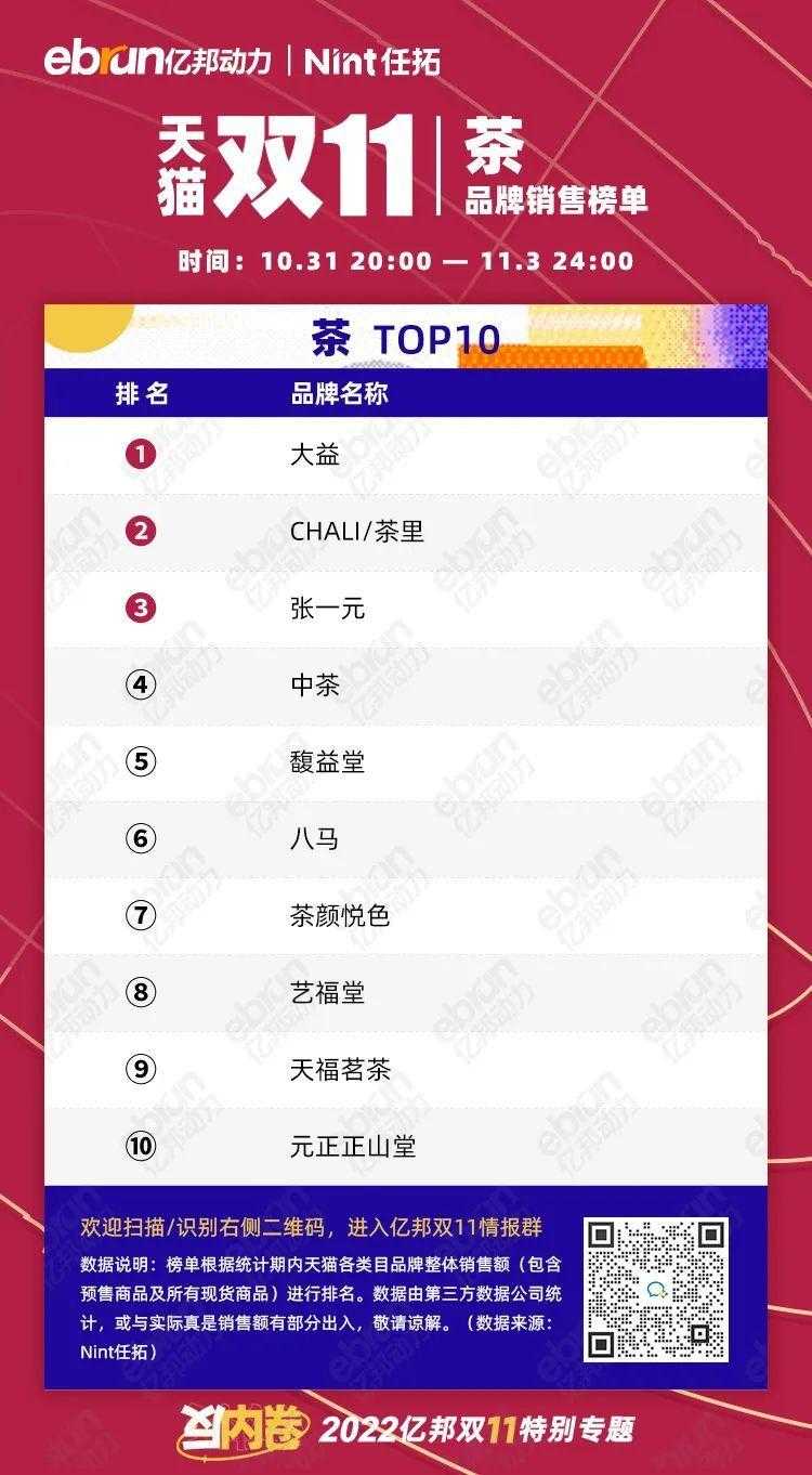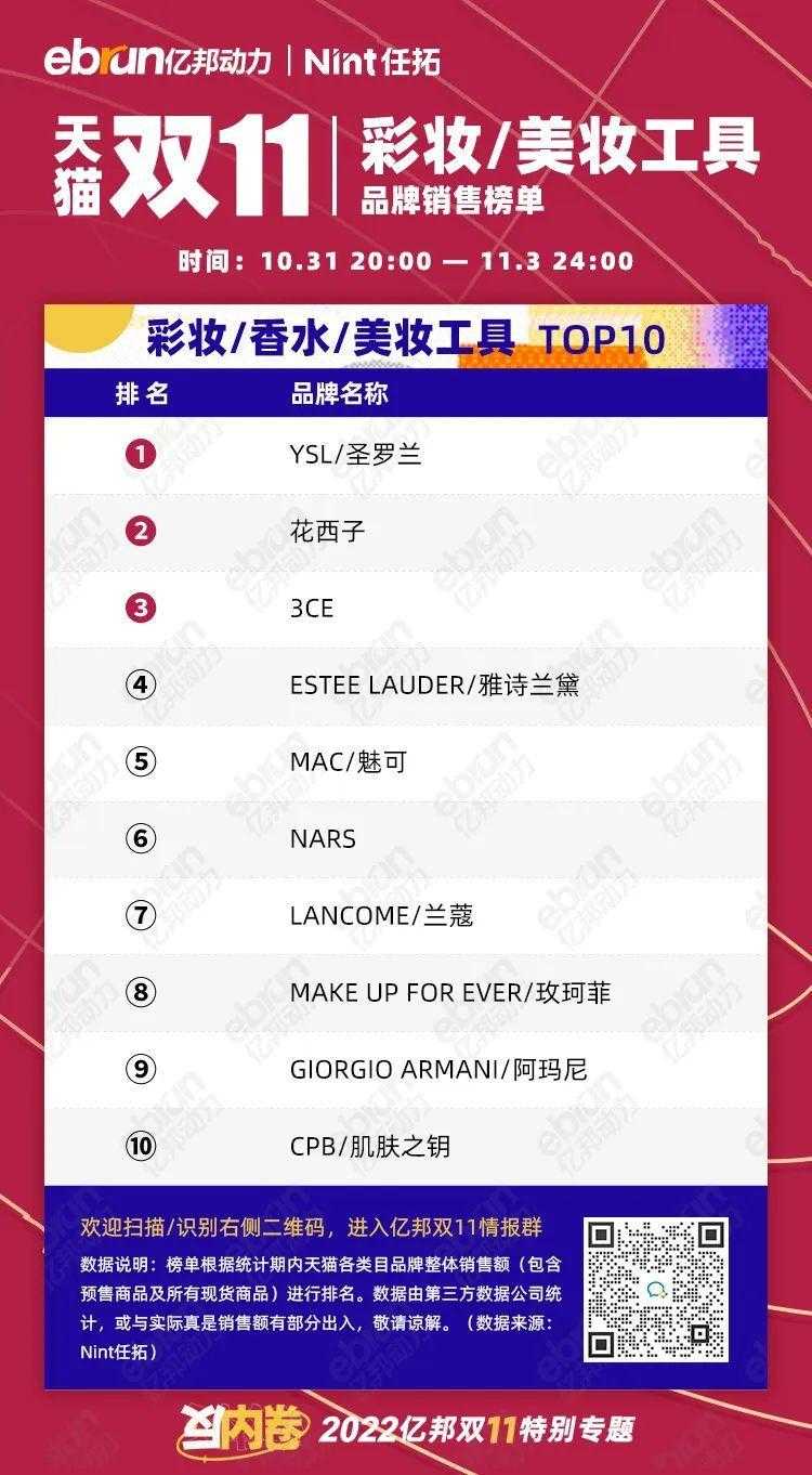 数据说明:榜单根据统计期内天猫各类目品牌整体销售额(包含预售商品及所有现货商品)进行排名。数据由第三方数据公司统计,或与实际真是销售额有部分出入,敬请谅解。(数据来源:Nint任拓)