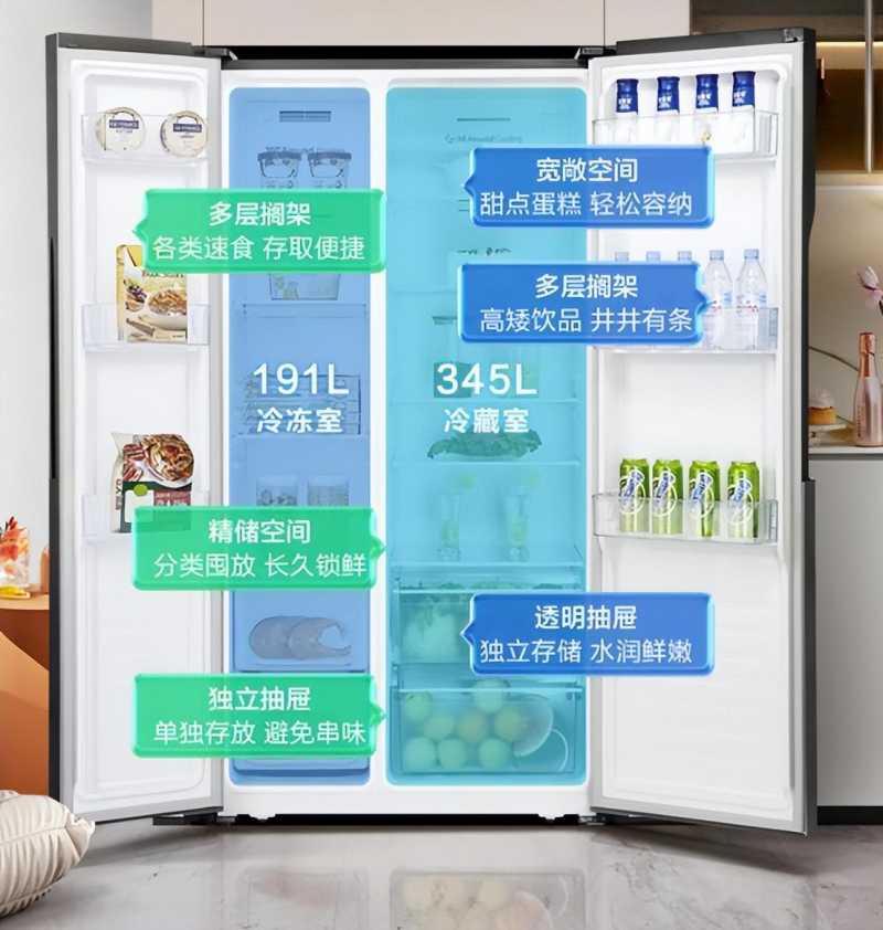 508升超大容量,还有三档变温抽屉,满足各种食材安心存放需求。加上无霜风冷、智能感温、快速制冷等功能,美的冰箱颜值与实用性俱佳。