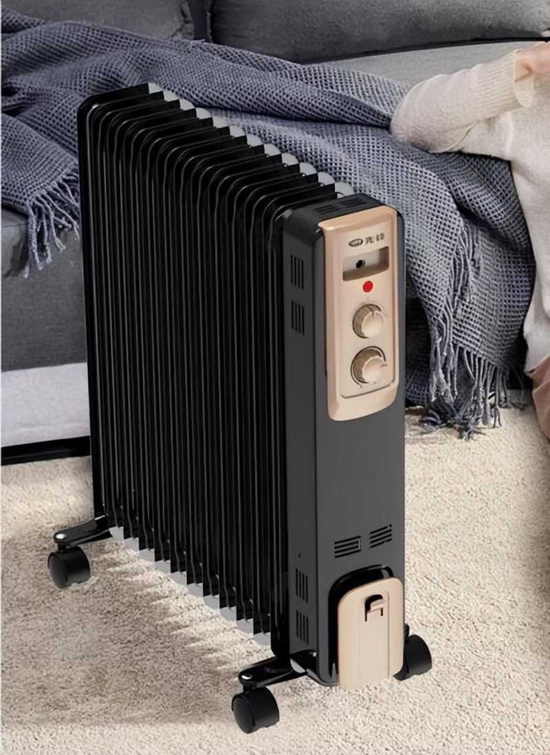 电油汀和暖气片长得类似,工作原理也类似,只是暖气片是通过水传热,而电油汀则通过导热油传热。油汀加热后,金属片温度升高,与室内周围的空气进行对流加热,从而达到取暖的目的。