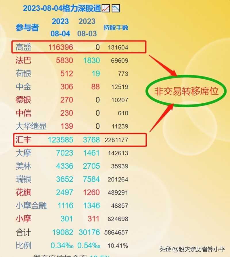 我过去多次说过,深股通中汇丰银行席位是散户大本营,鱼龙混杂,大的机构资金也经常隐匿其中以利隐蔽行踪浑水摸鱼。这次这只持有格力电器数量超过了千万股的大鳄,为什么要在登记分红前夕,突然将股票转移到高盛证券席位上去?不会无缘无故没有原因的。