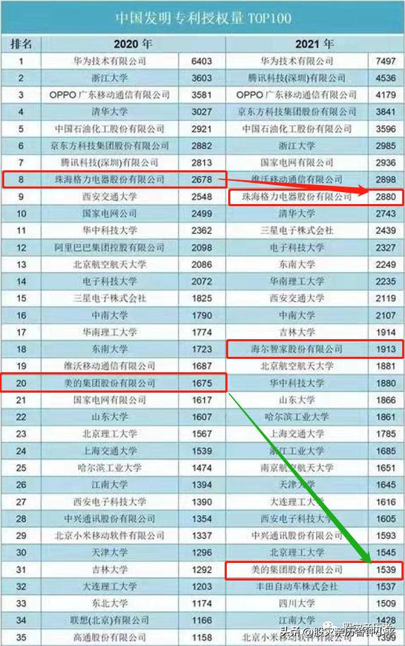 我看到后就在网上发文质疑过这事,美的发明专利数量在全球家电领域第一,为什么在中国国家知识产权局披露的专利授权数量的排名中却排在格力电器之后呢?