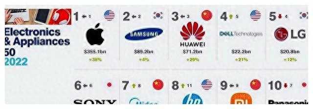 全球电子家电品牌新排位:美的第7、华为第3,格力未能进全球前十