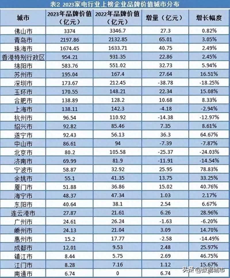 家电品牌价值排行广东品牌占比过半,佛山青岛合肥争家电产业名城