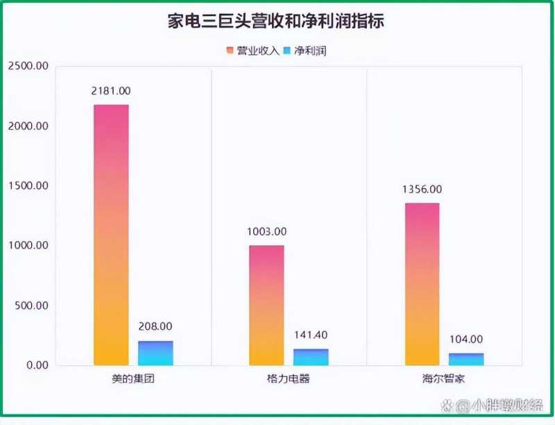 备受媒体追捧的海尔智家看起来在营收和净利润方面都在双向加速,但其实营收也就超过格力一点,净利润还是三巨头中最差。