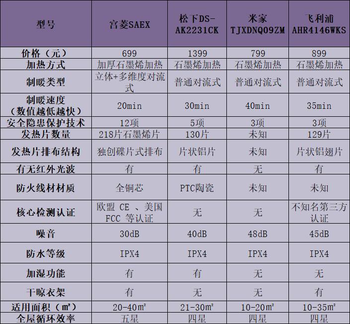 借助对取暖器测评推荐2024产品实测数据整理,为大家筛选出十款各具特色的产品,并且针对这些产品,从性能、加热效果、外观等各个维度进行了全方位的测评对比。希望大家可以通过下面这部分的测评内容,找到自己满意的产品,也可以学到更多的选购技巧。下面是部分热门产品的详细参数,大家可以作为选购参考: